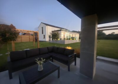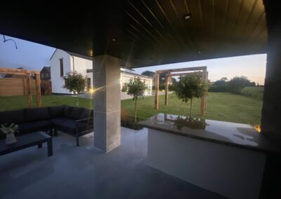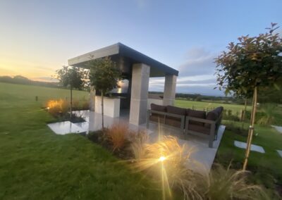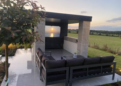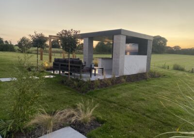 At GRS Landscaping, we offer a wide range of gardening and paving services. On this project, the paving stones lead the way to the walnut coloured decking. We’ve had so many compliments regarding the garden decking on this project. The finished garden looks amazing, with a seating area and a pizza oven. If you like the look of this garden project then please contact us and we would be happy to create an amazing garden for you.